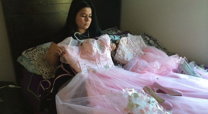 Maria Reyes, con el vestido para que iba a usar su hija Damaris en su fiesta de 15. Días antes fue asesinada por mareros en un suburbio de Washingtin. (The Washington Post)