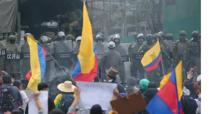 La semana inició todavía con la resaca de la represión que ejerció la Policía de Perú a la manifestación del domingo convocado con motivo del 12 de octubre, donde a la reivindicación indígena se sumaron las demandas que guían estas protestas contra las políticas de Noboa, a la vez que las Fuerzas Armadas cortaron los accesos a Quito e impidieron que llegasen manifestantes de otros lugares.