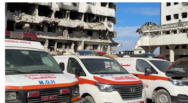 A las puertas del centro, ubicado en la ciudad de Gaza (norte), las ambulancias se alinean entre el polvo y los escombros del resto del recinto, que apenas se tiene en pie tras ser devastado por la artillería israelí.