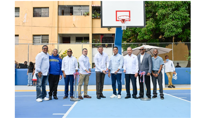 La remodelación de la cancha mixta de Villa Consuelo, donde se practica baloncesto y voleibol, es una de las obras que Banreservas realiza en toda la geografía nacional en beneficio del deporte y la juventud dominicana.