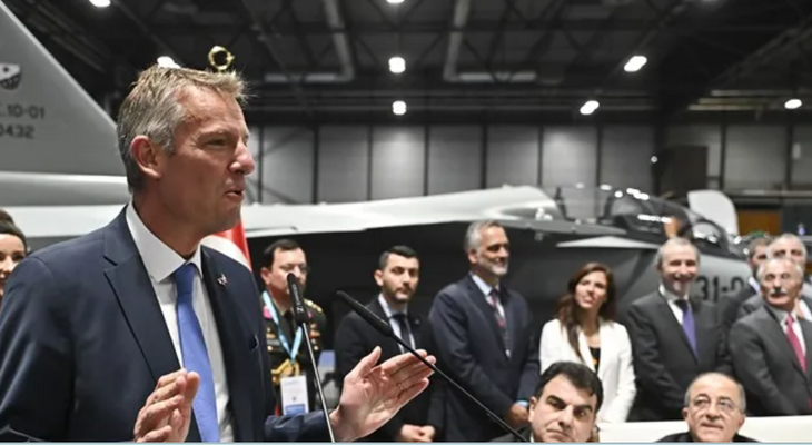 El presidente y consejero delegado de TUSAS, Mehmet Demiroglu, durante el acto de firma de un memorando de entendimiento entre España y Turquía por el que ambas se han comprometido a que sus industrias de defensa cooperen en un programa de entrenamiento avanzado de pilotos de combate cuyo resultado puede ser la sustitución de los actuales aviones para la formación F-5M del Ejército del Aire español por los modernos Hürjet turcos.