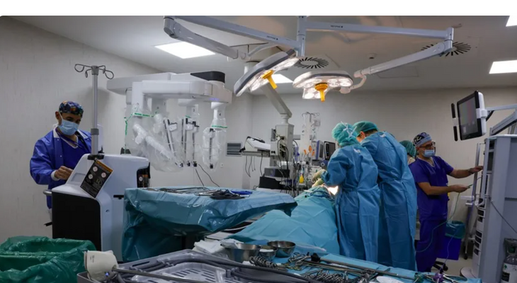 Primera cirugía robótica del mundo para la extracción de un tumor agresivo por un único orificio y con el paciente sin intubar. Foto: Zipi Aragón. EFE