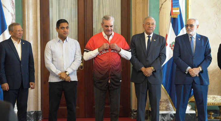 El equipo rojo de la capital, que se impuso 4-1 en la Serie Final de LIDOM sobre los Toros del Este, presentó la Copa Banreservas al mandatario, a quien el presidente del Escogido Baseball Club, Eduardo Najri, entregó una camiseta del conjunto con el número 1 en el dorso.