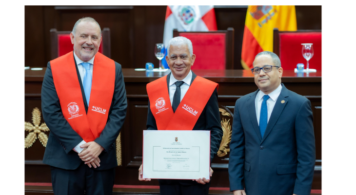 La ceremonia estuvo encabezada por el presidente del Senado, Ricardo de los Santos, junto al representante académico de la UCLM, Marcos Francisco Massó Garrote; el presidente del Tribunal constitucional, Napoleón Estévez Lavandier, y la senadora Lía Díaz de Díaz, secretaria del bufete directivo.