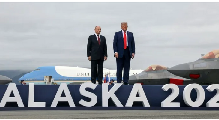 Sombras de Putin y Trump durante su comparencia ante la prensa tras su reunión en Anchorage, Alaska, el pasado mes de agosto. EFE/EPA/Sergey Bobylev/SPUTNIK/KREMLIN POOL / POOL MANDATORY CREDIT