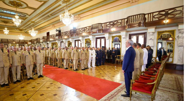 APUNTE.COM.DO, Santo Domingo.- El presidente Luis Abinader, expresó este viernes su orgullo y admiración por las Fuerzas Armadas y la Policía Nacional, al encabezar el acto de salutación solemne de oficiales que conmemoran 35, 30, 25 y 20 años de servicio ininterrumpido, resaltando que la República Dominicana se ha consolidado como “un faro de paz, tranquilidad y estabilidad” en la región, gracias al fortalecimiento y trabajo de estos cuerpos.