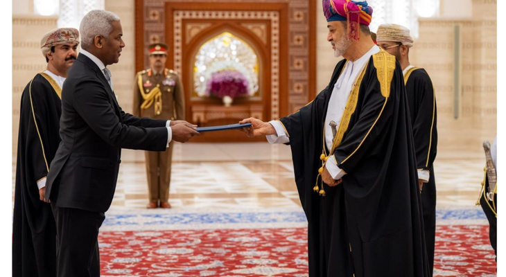 Durante la solemne ceremonia en el Palacio Al Baraka, Rodríguez Durán entregó las credenciales a Su Majestad el Sultán Haitham bin Tariq Al Said con quien sostuvo un cordial intercambio, transmitiendo los saludos personales del presidente Luis Abinader.